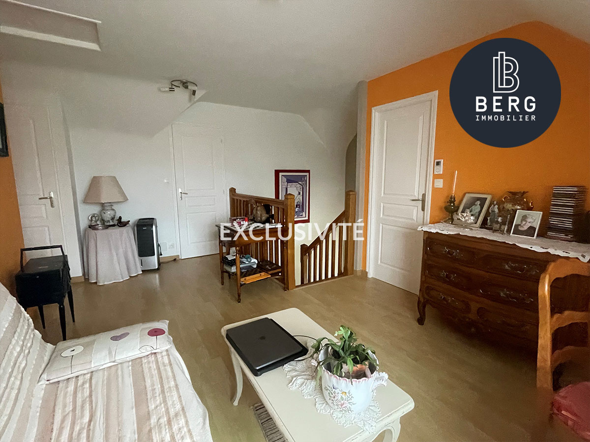 A l’étage, un grand palier distribue 3 chambres dont une avec dressing, une salle d’eau et des wc indépendants.