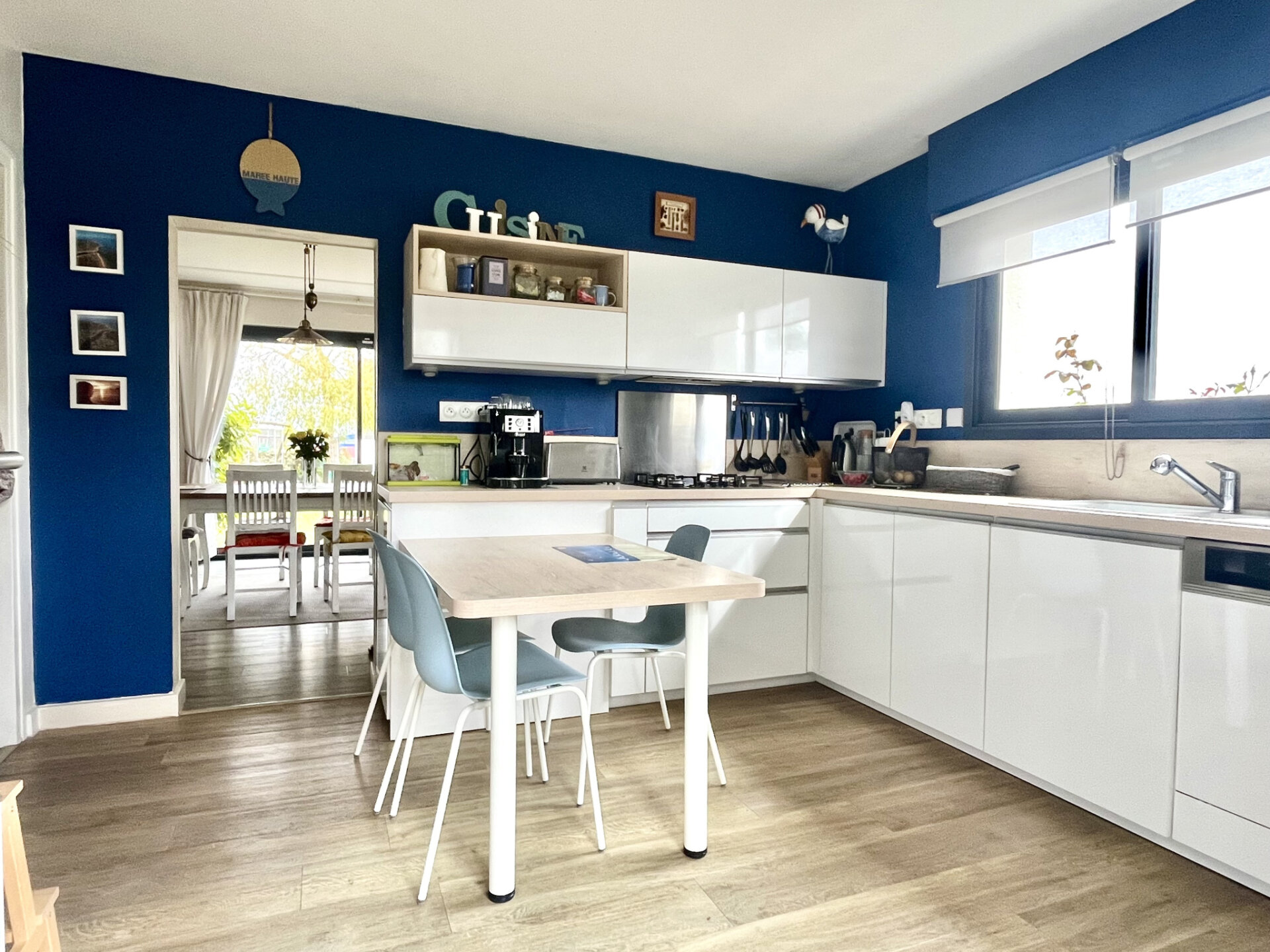 La cuisine, entièrement équipée et contemporaine, s’intègre parfaitement à l’ensemble, alliant esthétisme et fonctionnalité.