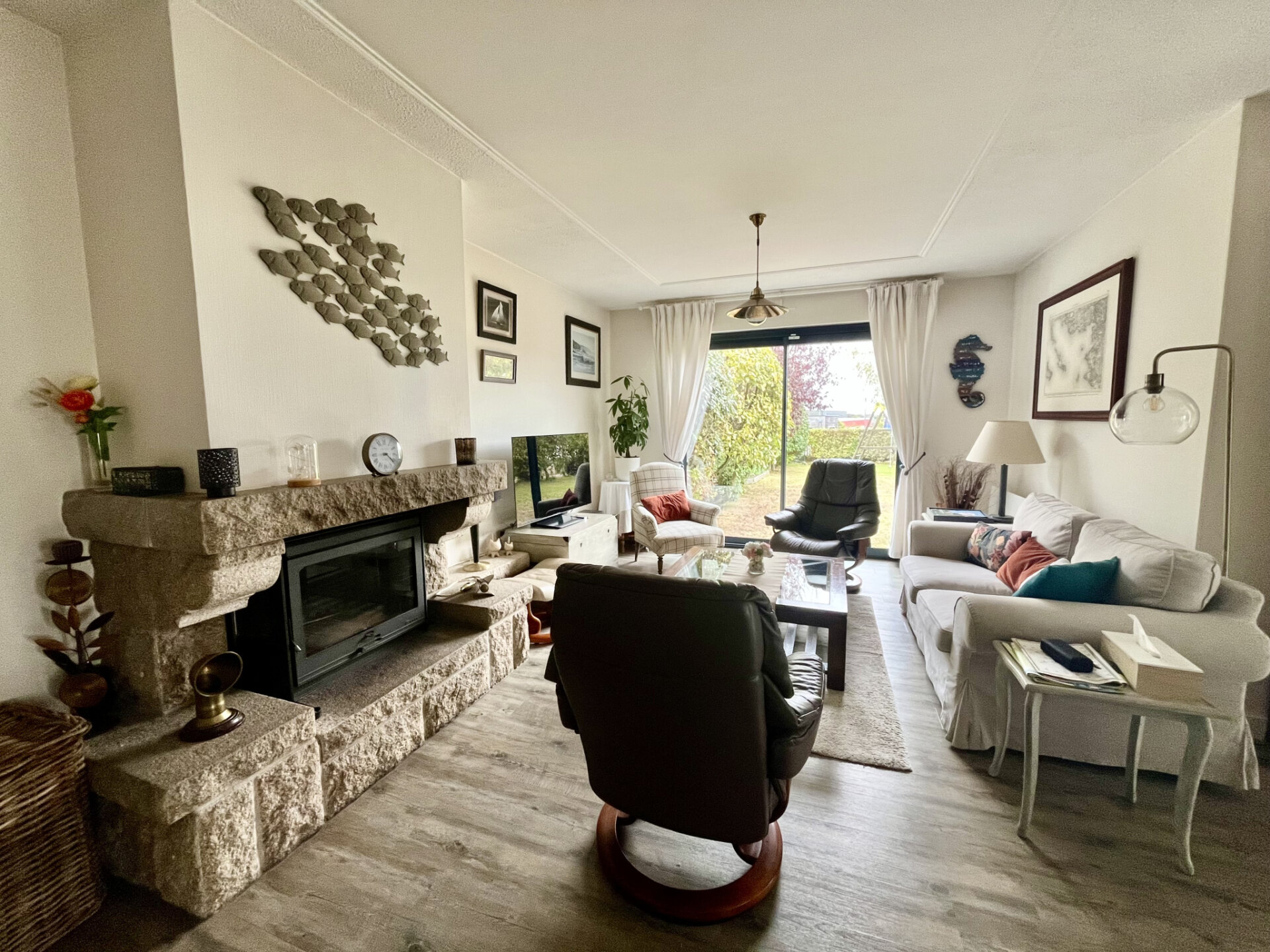Vous serez charmé par une entrée chaleureuse donnant sur une belle pièce de vie lumineuse, aux volumes généreux, offrant un espace convivial pour se retrouver en famille ou entre amis.