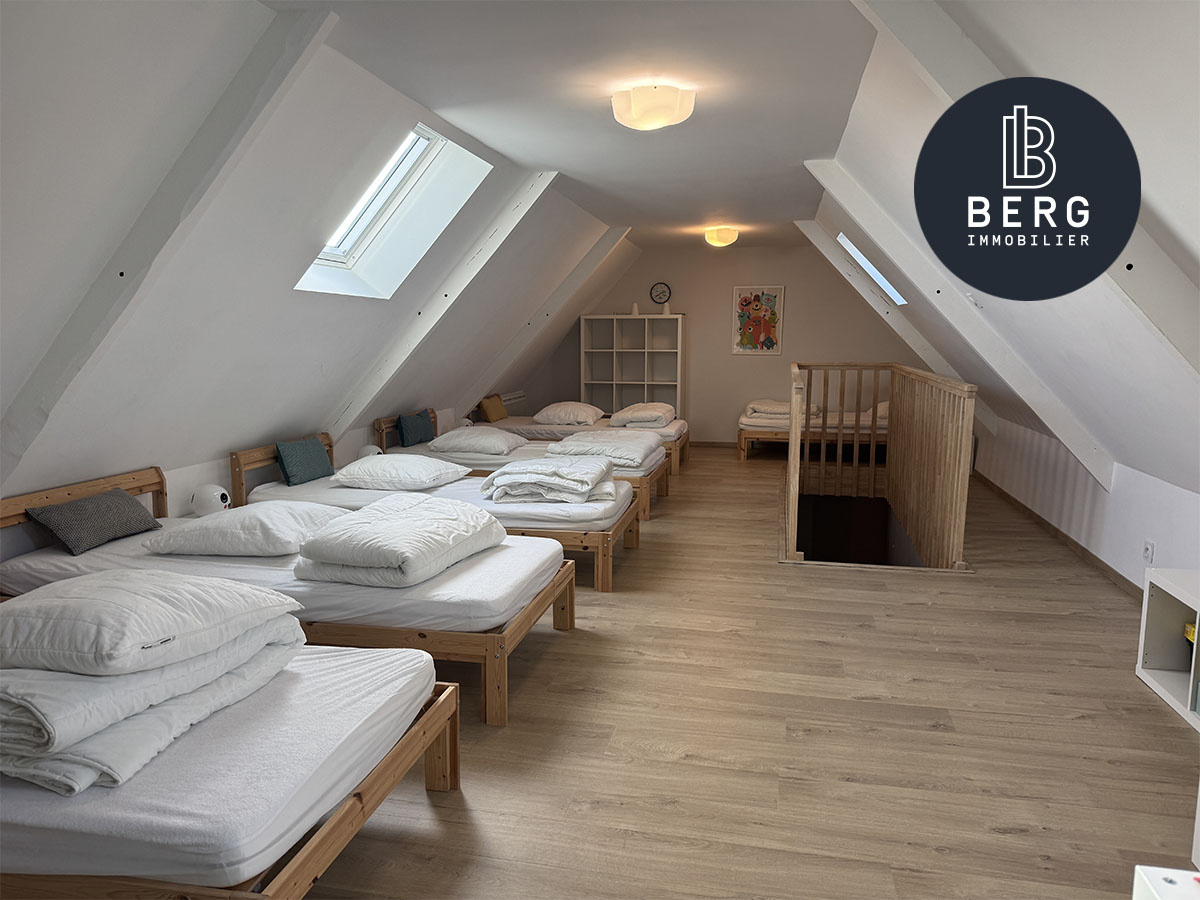 Au premier étage, mezzanine, deux chambres et salle d’eau. Au deuxième, un dortoir pouvant accueillir famille et amis dans un cadre chaleureux. Un atout supplémentaire avec son local commercial attenant.