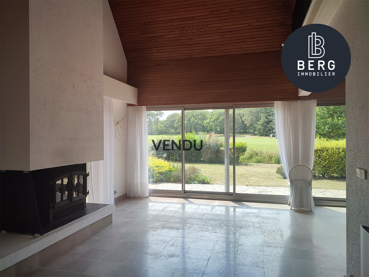 Cette maison se compose d’une entrée avec de nombreux rangements, donnant accès à un salon séjour cathédrale avec cheminée, qui bénéficie d’une belle luminosité grâce à ses grandes ouvertures qui offrent une vue imprenable sur le jardin et le golf. Une mezzanine, parfait pour travailler dans un espace calme et inspirant. Une cuisine séparée avec accès au garage.